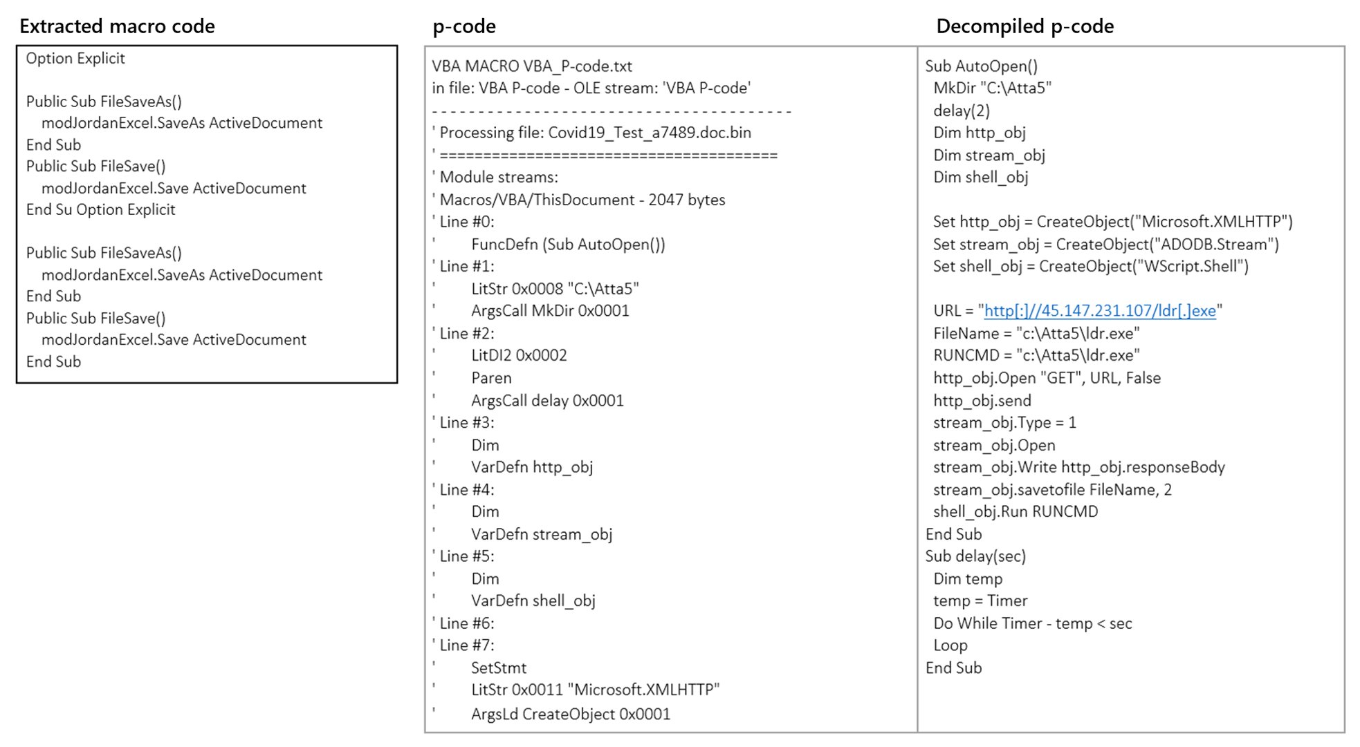 Microsoft Security Intelligence على تويتر Attackers Use Vba Stomping To Hide Malicious Code For Example In This Campaign The Extracted Macro Source Code Looks Benign But Decompiling The P Code Reveals The Code