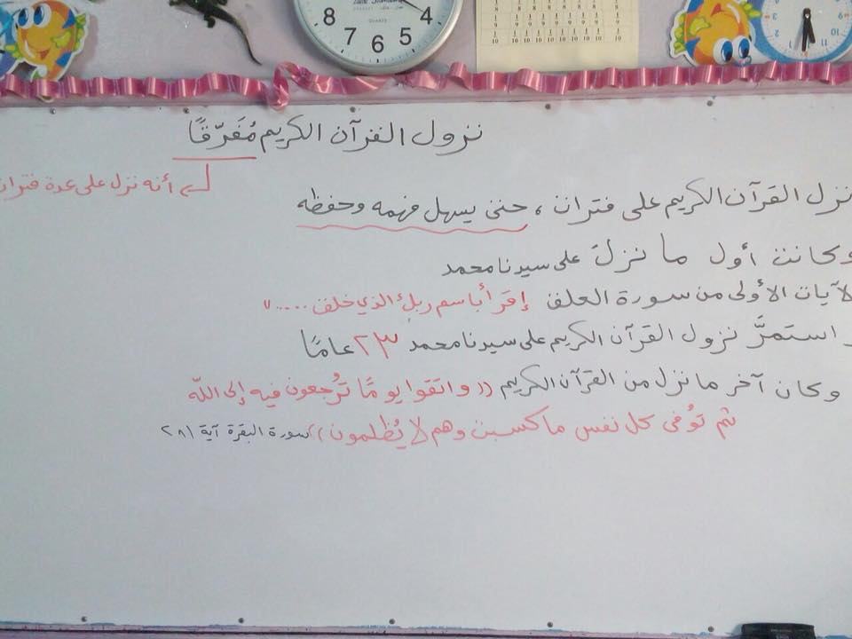 بالصور شرح درس نزول القرآن الكريم مفرقا لمادة التربية الاسلامية الصف الثالث الفصل الثاني منتديات صقر الجنوب